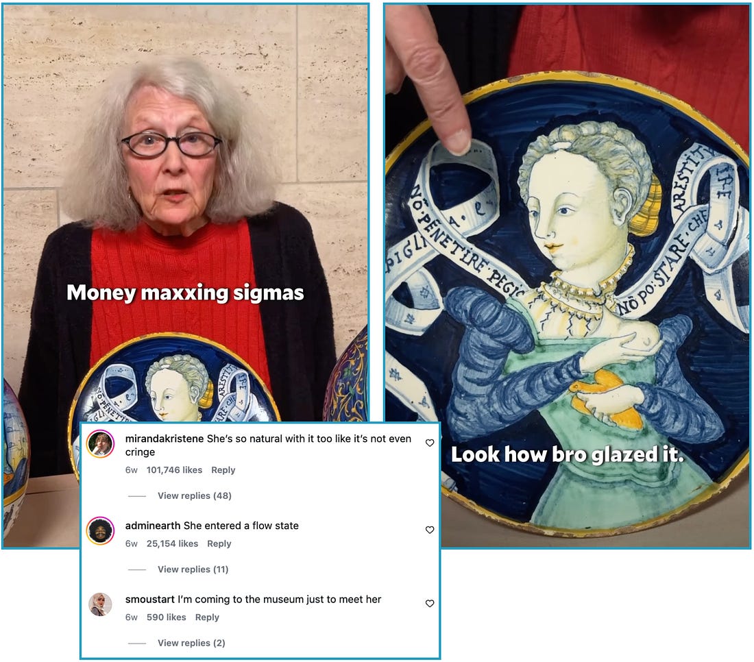The museum with an unexpected starI talked to the team at the National Gallery of Art, including 77-year-old curator Alison Luchs, about “rizzing up the internet with art history.”Before we get into today’s newsletter, a quick ad! I partnered with the team at Slate to bring Link in Bio subscribers a critical discussion on the state of social right now. There’s no better person to have that conversation with than Carmen Vicente, Content and Social Lead at Slate and the creator behind some of my favorite videos on the algorithm. We’ll be talking about the good, the bad, and the ugly of working in social media—and answering some of your questions too! It’s happening on February 18th at 9 AM PT / 12 PM ET. You can RSVP here. How the National Gallery of Art is “rizzing up the internet with art history”“Chat, peep this bussin’ clay dish from the 16th century, made in the workshop of an Italian rizzler named Orazio Pompei.” This is how a recent viral video from the National Gallery of Art opens. No, it’s not a Gen Z intern speaking. It’s Alison Luchs, a 77-year-old curator of early European sculpture. It is now the most-watched and most-engaged social post in the National Gallery’s history. The idea for the video came from Sydni Myers, the Senior Social Media Manager at the museum. She told me over email, “I noticed a pattern among museums—mainly in the UK—where curators were speaking in Gen Z slang, language that originates in Black internet culture and AAVE.” Sydni wanted to see if she could push the trend in a more educational direction. She shared, “I was more interested in what would happen if we treated that language as a vehicle for art history, not just jokes. The idea was to focus on one overlooked object at a time and pair it with a curator who could deliver the language with sincerity.” Sydni caught Alison, who she knew would be perfect for the role, as she was walking out of an all-staff meeting. Sydni asked if she’d be open to “rizzing up the internet with art history.” She remembers Alison pausing for a second and then saying, “If it helps bring attention to the sculptures, I’m in.” The rest is, well, history. The juxtaposition of Alison, who commenters often call “grandma” and granny”, and the words coming out of her mouth creates a tension that immediately engages audiences. As Sydni put it, “People don’t expect to see a 77-year-old curator from a traditional art museum recite terminally online slang with monk-level seriousness.” That unexpected hook makes viewers want to stick around to learn about, say, maiolica plates and red purple stone urns. When I asked Alison what she thought when Sydni first pitched the video, she said, “I was puzzled. I wondered who would want to watch a video of a very senior curator speaking Gen Z slang.” Turns out, a lot of people. Since the initial video’s success, the team has published another installment with more on the way. In total, the two videos have almost 9M views and a total watch time of over four years, according to the museum. The processBefore scripting the first video, Alison took the social team on a tour of Italian Renaissance drug jars. (Yes, that kind.) They happened to pass by a specific maiolica plate which sparked a lot of conversation. (Watch the video, and you’ll understand why.) They decided to make that object the star of the Reel. After the tour, the team set up what was essentially a writers’ room, with social media copywriter Mary King shepherding the script. “A group of millennials and Gen Z team members brainstorming how to make art history resonate online in the basement of an art museum,” as Sydni describes it. Alison then memorized the script by treating it like a “linguistic challenge.” Alison speaks French, some Russian, and more languages. The videos are all shot and edited in-house. “Because we do quite a lot of media production across exhibitions and digital channels, we are lucky enough to have a production studio team,” Sydni tells me. One of those team members is Amelia Mylvaganam, who fans might recognize as the person who helps Alison get on set at the beginning of each video. When I asked Alison if there’s a favorite phrase or term she’s learned from filming, she says, “How can you beat ‘The glow still slaps after 500 years!’”? That’s one of our main messages.” Humor is a gatewayWhile most of the comments on the videos are positive, there are some that imply that art should be revered and not turned into a comedic sketch. When I ask Nick Sharp, Chief Digital Officer at the museum, what he thinks of this, he says, “Artists, authors, academics, and philosophers all joke, tease, and play in their everyday lives. The funniest person you know is probably also very smart. Art is made through discipline and seriousness, but also through mischief, curiosity, and humor. Those things are not in conflict. You can have fun in a serious way.” The museum’s audience seems to understand this. Some of the top comments read “I’m in love with this series and love it when i can understand the significance of a piece!” and “I'm not even kidding, I learned a lot from this video.” Alison also made clear that the artworks they are choosing are very intentional. She says, “In each case so far, we picked a work with playful content, that even the original audience was meant to have fun with. The approach could be disrespectful for a work of devotional art, for instance, or a painting of a tragic subject. But in the objects chosen for these videos, the joke is already there. It's not some trick we're playing on dead artists, it's something they wanted people to notice.” For a lot of viewers, these videos might be their introduction to art altogether. That means something. As Nick put it, “Humor is a gateway. It makes people pause and pay attention, which is the first step toward looking and thinking. Take 